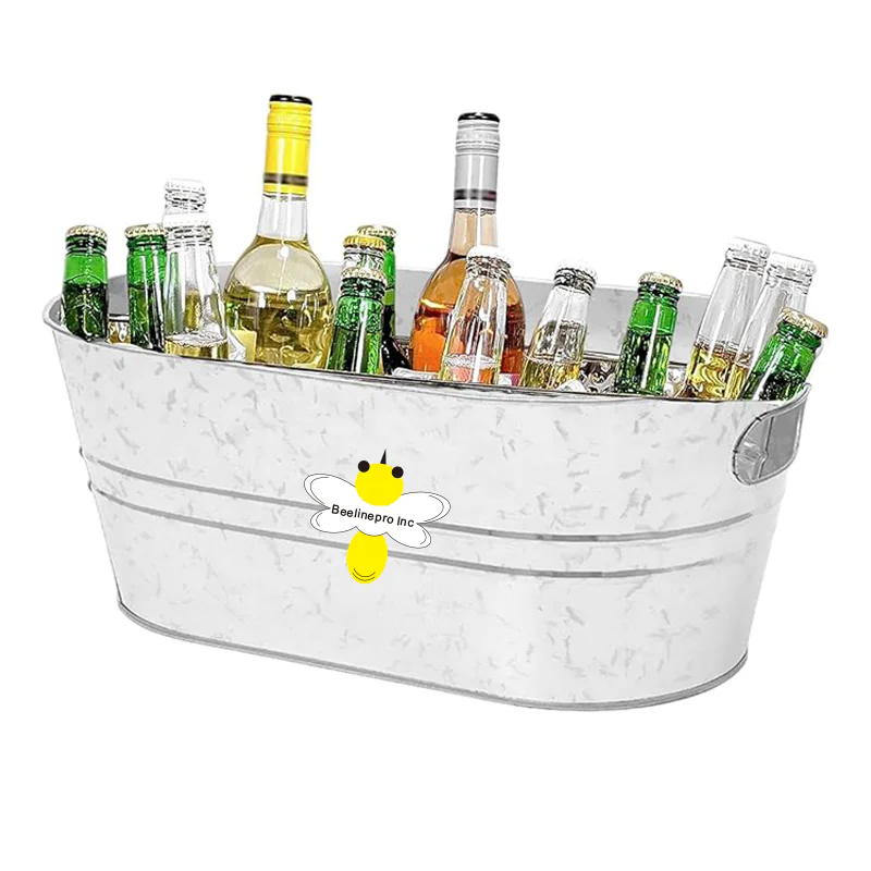 BEE4010# 3 Gallon Galvanized Tub Ice Bucket Large Metal Drink Buckets for Parties Beer Beverage for Champagne Cocktails