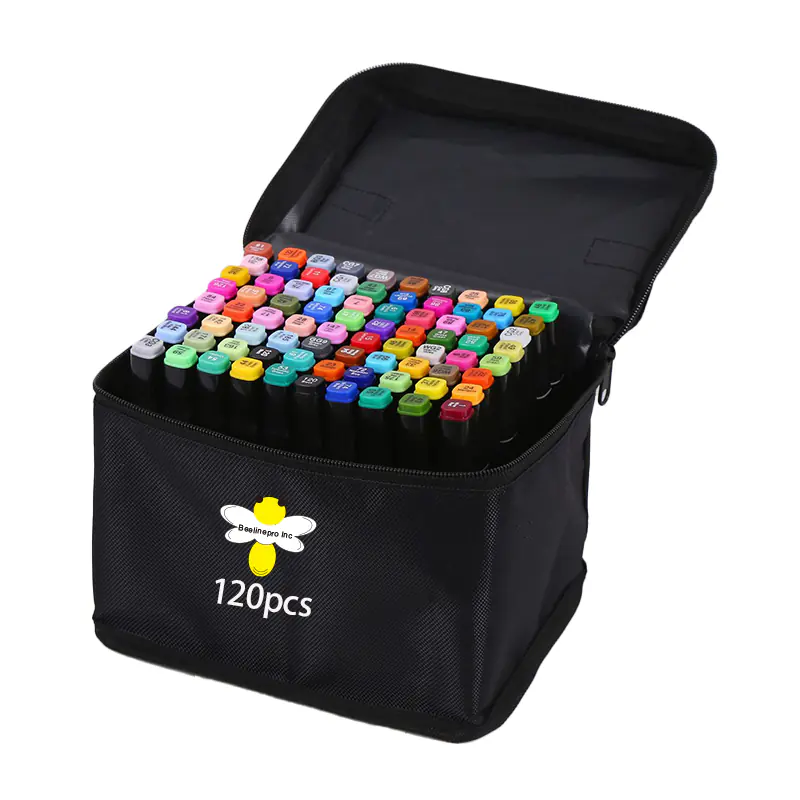 BEE10001# 120 Colors Black Non-Toxic Dual Tip Alcohol Based Art Markers for Arts