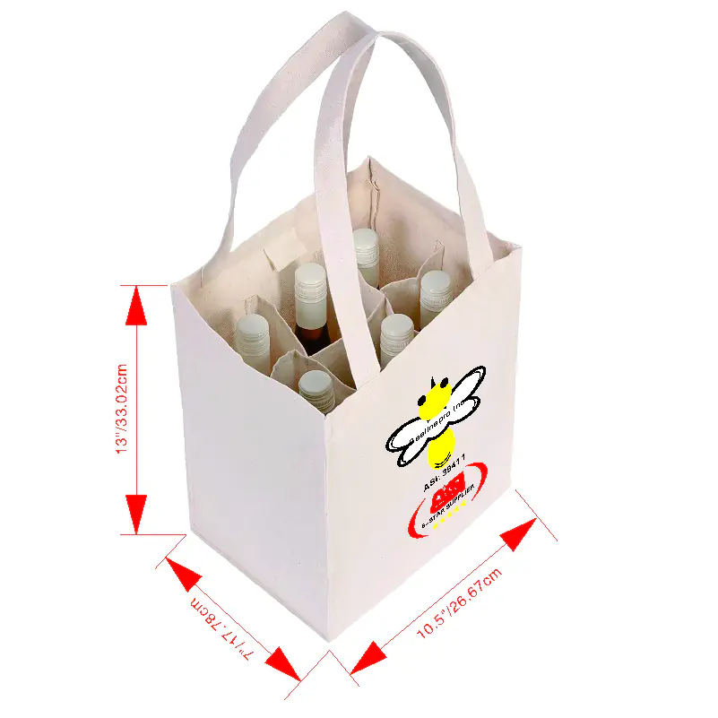 Six Bottle Canvas Wine Tote Bag for Classy Carrying — This elegant wine bottle carrier accommodates up to six bottles. Whether you’re headed to a friend’s house or out on the town, these chic tote bags make it easy to bring your favorite Chardonnays or Cabernets along