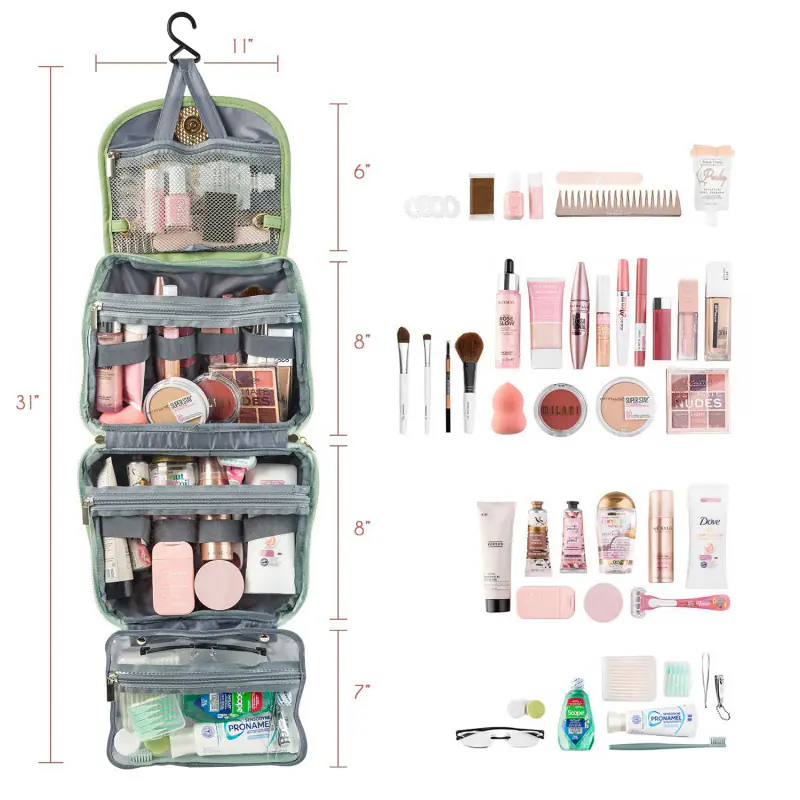 This bag is made from waterproof leather.It has 4 large-capacity independent compartments with zipper and back pocket for easy storage and suitable for your family travel,including all toiletries for men, women and children.Choose and use it!