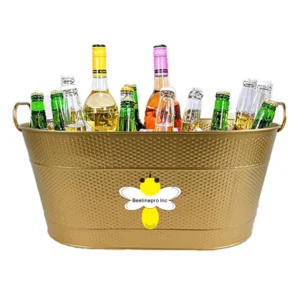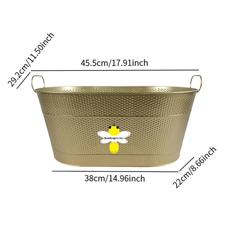 BEE4009# 15L Large Ice Bucket Ice Holder Galvanized Tub for Champagne Beer Party (Golden)