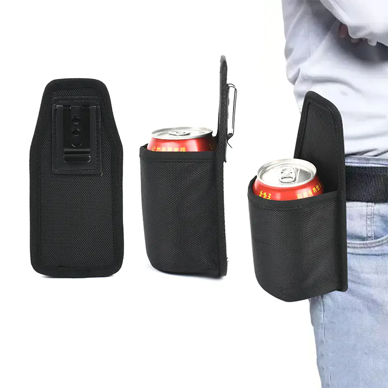 This holster is made from oxford fabric.It is perfect for carrying a diameter of up to 2.6 inches beer/drinks bottles and cans.Very suitable for father, friends, beer lovers and outdoor enthusiasts.Choose and enjoy it!
