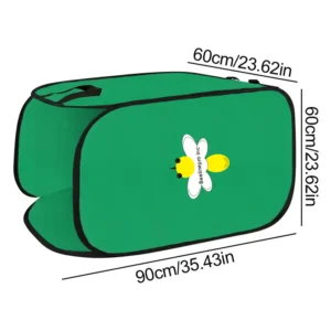 This Leaf Collector’s measure is 23.6×26.6×35.5 inch(60*60*90cm), folded size is 9.84×9.84×3.54 inch (about 25 cm),with a capacity of 80 gallons.