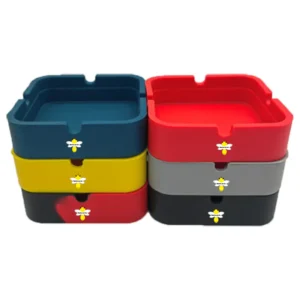 This square ashtray pick, made of eco-friendly silicone, measures 3.15 inches long and 3.15 inches wide. It is easy to clean, bendable, and unbreakable, with a durable design that prevents deformation. Lightweight and portable, it features a safety T-shaped cigarette holder. Reusable and ideal for home, outdoor, bar, and hotel use.
