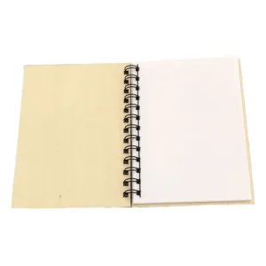 Notebook Size is around 21.5 cm / 8.46 inches Length,17 cm / 6.69 inches Width,2 cm / 0.78 inches Thickness.It has 60 sheets in ecological material with blank page for writing,painting,drawing.
