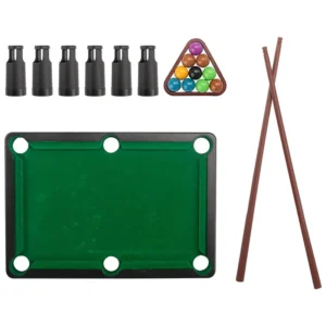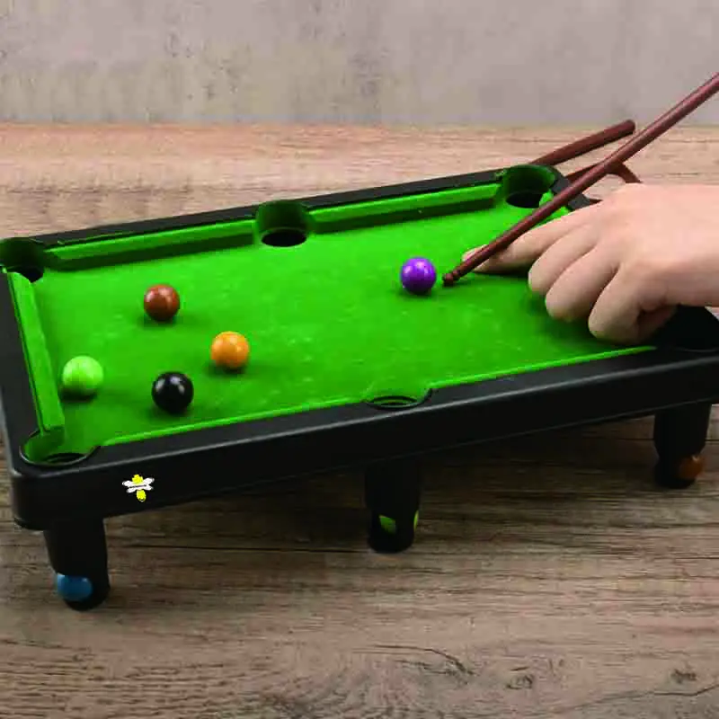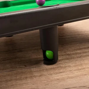 This miniature pool table is made with plastic and the same green felt that covers regulation sized billiards tables. Game balls and sticks are the optimal size and weight for the table, making it easy for you to practice shots and perfect skills