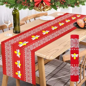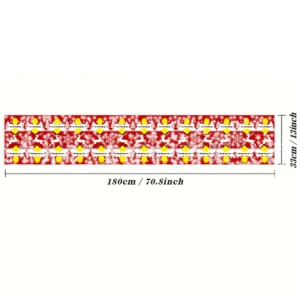You will get a Christmas theme table runner with a size of approximately 13 x 71 inch( 33 x 180 cm), which is long enough to decorate your dining table.
