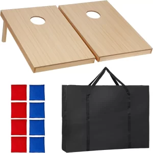 STURDY CONSTRUCTION – Our cornhole set legs and frames are made from 100% high quality pine wood that far exceeds ACA regulations. The stable cornhole board reduces vibration, and can withstand adult weight and provides a better throwing gaming experience